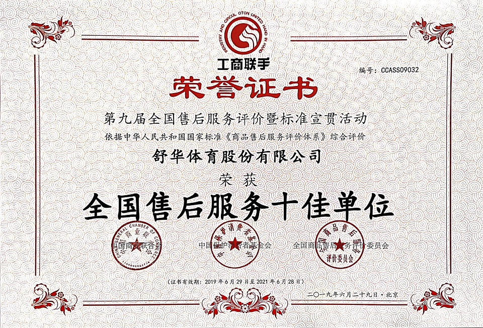 From 2017 to 2018, Shuhua was named the "Top 10 Enterprise of Body Building Equipment Industry in China Light Industries " for the second consecutive year. In 20